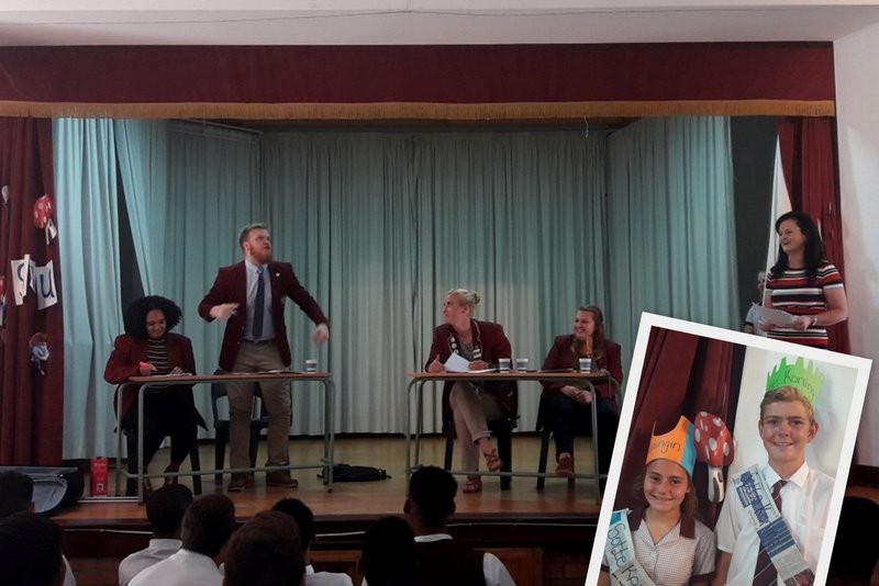 Lees MeerBy die jaarlikse gr 8 konsert is die nuwe onderwysers by die skool ook nie ontsien nie, en moes hul ook ‘n item lewer. Hul het hul uitstekend van hul taak gekwyt en die leerlinge het uit hul mae gelag vir hul toneelspel. Links: me. Jonkers, mnr Wiid, me. Coetzee, me. Venter en me. Steenkamp…
