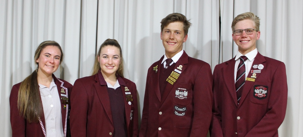 Lees MeerLeerlingraad 2022 Hoofleiers: van Links na regs: Robyn Koetaan (onderhoofmeisie), Chloe Stannard (Hoofmeisie) Ruan Deysel (Hoofseun) en GP Borcherds (Onderhoofseun)