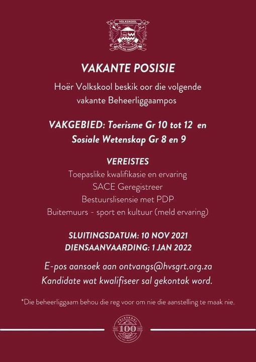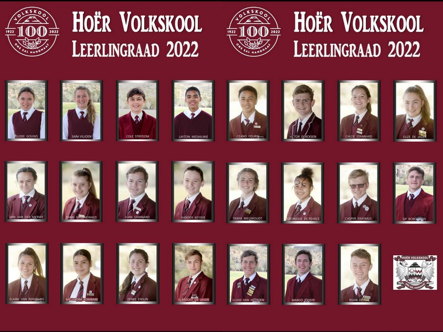 Lees MeerVolkskool vier in 2022 sy Eeufees. Die HVS leerlingraad wat verkies is vir hierdie besonderse jaar, is as volg: GRAAD 8 Dogters: Elizke Gouws Saré Viljoen Seuns: Cole Strydom Layton Meshilinie GRAAD 9 Dogters: Jani van der Merwe Zanri Groenewald Seuns: Juan Stannard Xander Keyser GRAAD 10 Dogters: Elaine van Rensburg Melandré Kombani Zenke Enslin…