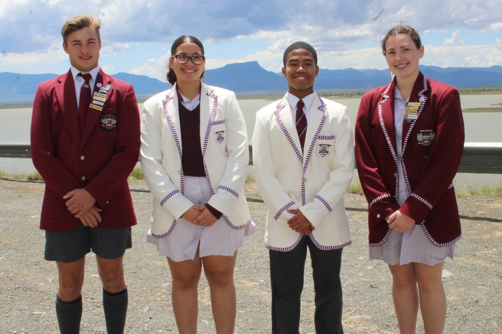 Lees MeerDie hoofleiers en die onderhoofleiers is by die prysuitdeling aangekondig: Vlnr: Albrecht de Jager (onderhoofseun), Melandrè Kombani (Hoofdogter), Chequin Koopman (Hoofseun) en Zenke Enslin (onderhoofdogter)