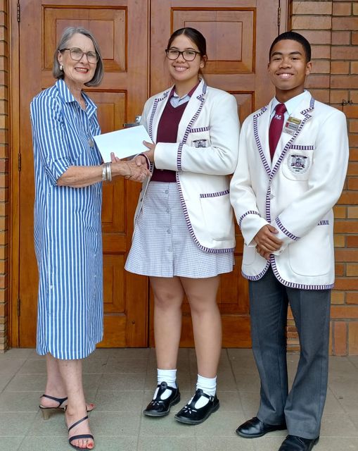Melandré Kombani en Chequin Koopman, hoofleiers van Hoër Volkskool, het Dinsdag ‘n koevert met HVS se donasie aan die Graaff-Reinet Kankerverening oorhandig. HVS het ‘n baie suksesvolle kankerveldtog tydens die kankermaand Oktober, geloots. Die projek is deur onderwysers en leerders ondersteun om fondse in te samel. Me. Hannetjie Pieterse, verteenwoordiger van die Graaff-Reinet Kankerverengiging het…