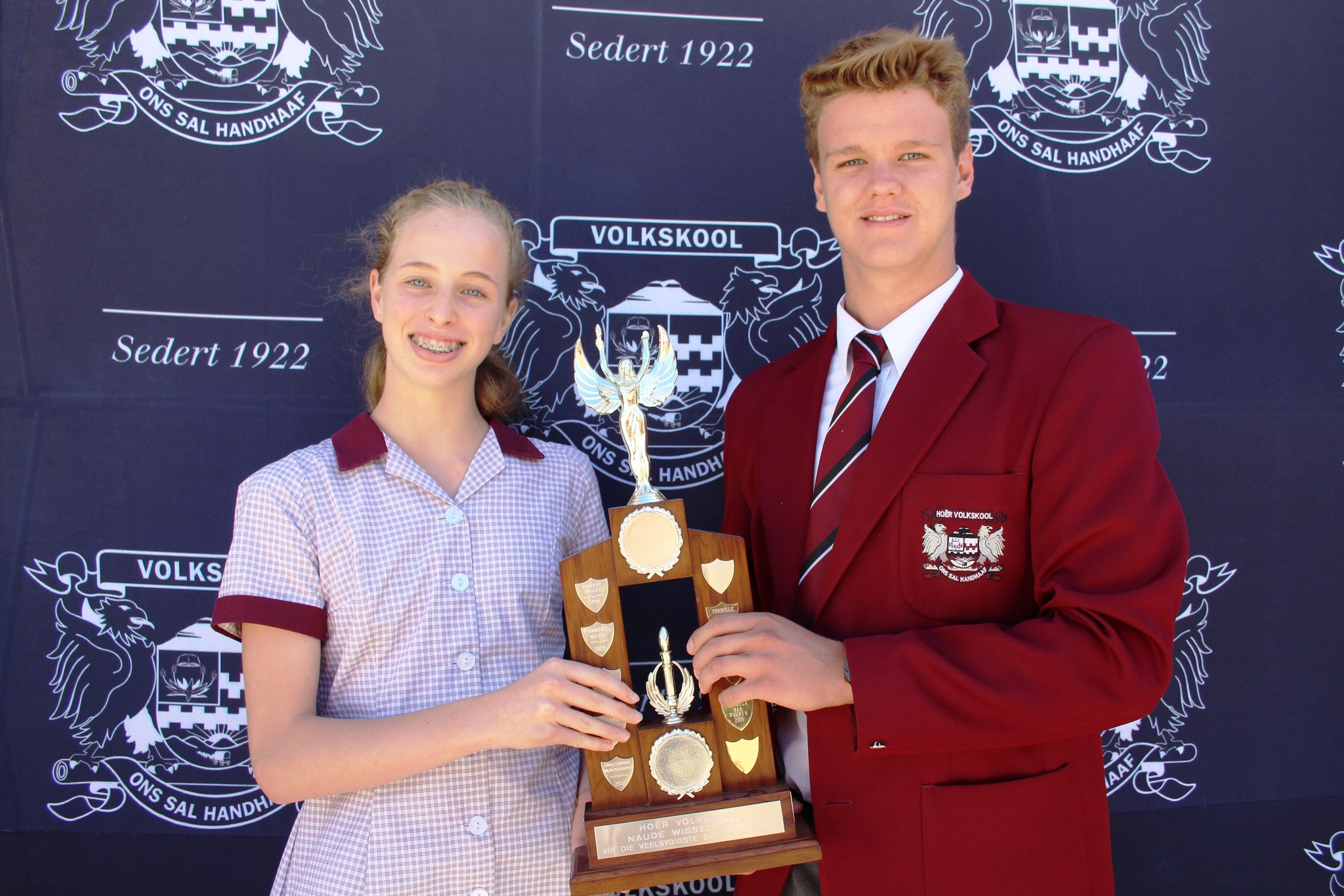 Lees MeerNa afloop van die Interskole swemgala teen Union High School het Hoër Volkskool die wisseltrofee vir die span met die meeste punte, gewen. Hoër Volkskool se top-swemmers van die dag, Kate-Lynn Kruger (Victrix Ludorum) en Hugo Botha het die trofee namens HVS ontvang. TROTS VOLKSKOOL!