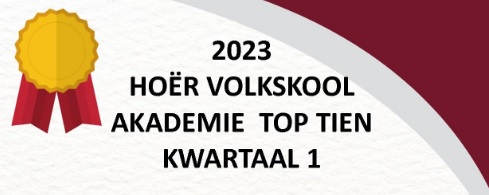 Akademie is een van die belangrikste boustene by Hoër Volkskool en word leerders aangemoedig om goed te presteer. Kwartaalliks word daar aan die Top 10 in elke klas erkenning gegee. Baie geluk aan die Top 10-leerders vir die eerste kwartaal van 2023.