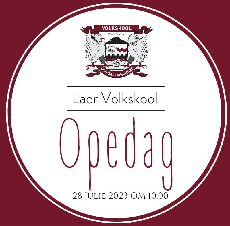 Lees MeerBesoek ons opedag op 28 Julie 2023 om 10:00 Bevestig jou teenwoordigheid: 049 8910803 of admin@laervolkskool.org