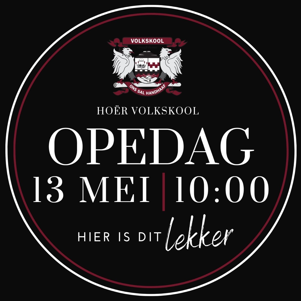Lees MeerMaandag, 13 Mei 2024 om 10:00 bied Hoër Volkskool hul jaarlikse OPEDAG vir alle belangstellende graad 7-leerders aan.Ons is uniek, ons is trots Afrikaans en ons is in die platteland! Het u al die GOOGLE vorm voltooi? Volg asseblief die skakel en voltooi die vorm om u teenwoordigheid te bevestig. GOOGLE VORM Ons sien daarna…