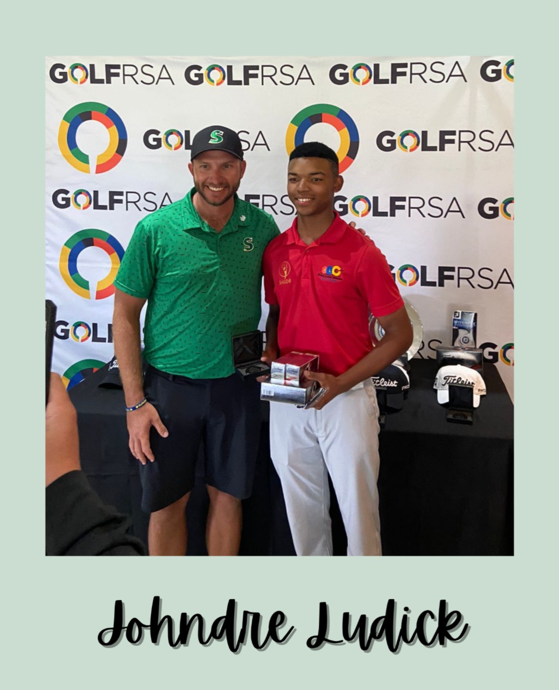 Lees MeerJohndré Ludick het die Dimension Data Seuns o.19 Kompetisie deelgeneem. Die kompetisie het te George, in die Wes-Kaap plaasgevind. Hy het tellings van 66 by die George Gholfklub, 74 by Kingswood Gholfklub en weer 70 by George Gholfklub behaal, met ‘n totaal van -6. Dit is ‘n baie goeie telling! Baie geluk, Johndré!