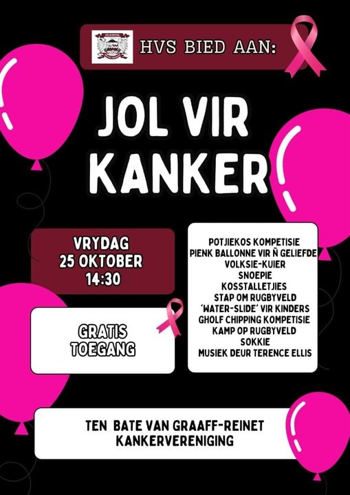 Lees MeerOktober is Kankerbewusmakingsmaand. Hoër Volkskool het hierdie jaar weer baie moeite gedoen om mense in en om ons gemeenskap meer bewus te maak van die siekte. Die leerders kon gedurende die maand pienk linte en haarrekkies by hul skoolklere dra. Die seuns kon hul swart skoeneveters met pienk veters vervang en hul was meer as…