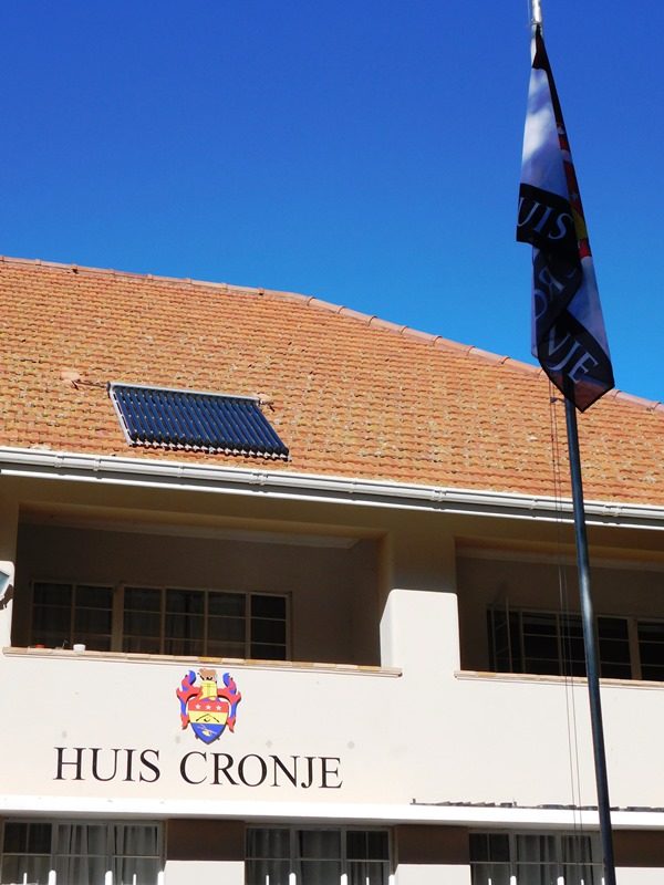 Vandag kan terug gekyk word met trots en groot dankbaarheid. Die hele koshuis is in hierdie tyd binne, sowel as buite geverf; kaste is vervang aan die seunskant en herstel aan die dogterskant; matriekbadkamers is oorgedoen; groot seunsbadkamer is oorgedoen; in die eetsaal spog ons met ‘n Hoofleiers-bord; voor die koshuis is ‘n netjiese palisadeheining; die hele koshuis se matrasse is vervang asook van die beddens; die koshuis het ‘n vlag gekry wat daagliks gehys word. Iets waarop ons baie trots is, is ons eie Koshuislied – geskryf deur die 2015 hoofdogter van Huis Cronje, Lizelle Nel.