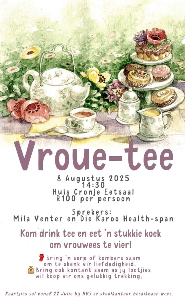 Kaartjies beskikbaar vanaf 22 Julie by Hoër Volkskool se skoolkantoor.