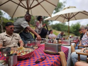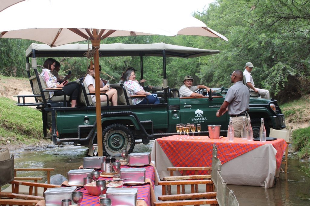 Die veld se stilte en oop ruimtes het vir almal ’n gevoel van vrede gebring tydens ’n ontspannende wildrit, waar die skoonheid van die Karoo ons telkens laat besef het hoe bevoorreg ons is. Daarna het ’n besondere bederf gewag – ’n middagete in die koel stroomwater, met voete in die sand en goeie geselskap om die tafel.